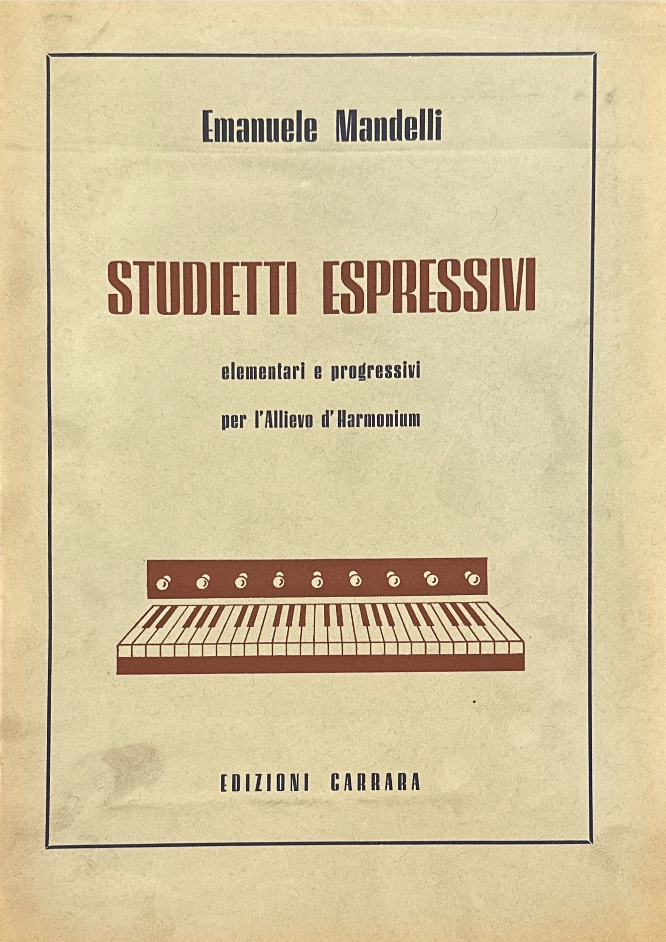 Titolo: Studietti Espressivi elementari e progressivi per l’Allievo d’Harmonium | 40 studietti espressivi per harmonium utili sia per l’allievo che segue un corso regolare, sia per l’autodidatta privo della giuda d’un maestro. Non costituiscono un’arida esposizione di formule meccaniche ma, nella semplicità e brevità, rispondono a quei requisiti che fanno di ogni Studietto una vera e propria pagina di musica.