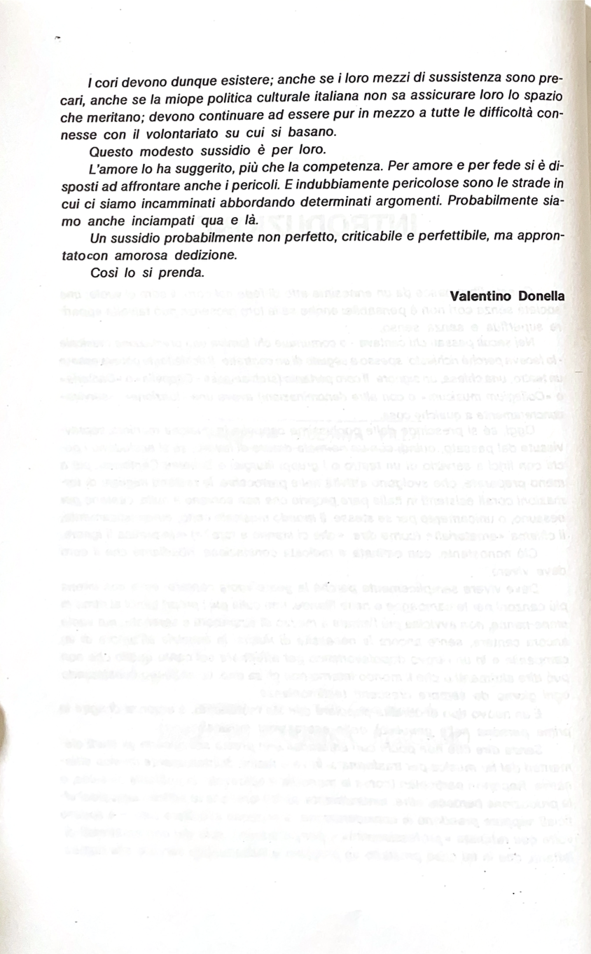 Libro di grande successo, pensato e scritto come un atto di fede nel coro. Scrive l’Autore nella presentazione: “il coro ci vuole; una società senza cori non è pensabile anche se la loro presenza può talvolta apparire superflua e senza senso…”. Questo libro tratta dall’A alla Z le problematiche della voce e le conseguenze che ne derivano nel coro. La tecnica della direzione fino alla preparazione del coro. Non mancano spunti sul repertorio e sulla conseguente prassi esecutiva.
