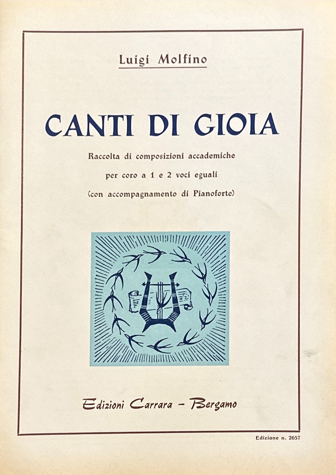 Titolo: CANTI DI GIOIA | Raccolta di composizioni accademiche per coro a 1 e 2 voci eguali (con accompagnamento di pianoforte)