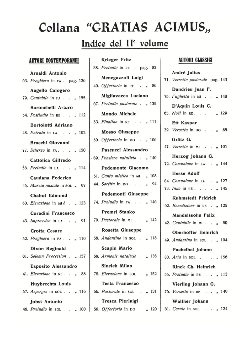 Questa storica collana in 27 volumi, che può e deve essere considerata il vademecum di tutti gli organisti, l’indispensabile per gli allievi e i dilettanti, la didattica economica per i seminari e i monasteri, il testo ausiliario per le scuole ceciliane, è da sempre accolta con entusiasmo ove vi sia un’anima sensibile che ama educarsi nella musica sacra, per dedicare la “parte migliore” del suo tempo al servizio divino.