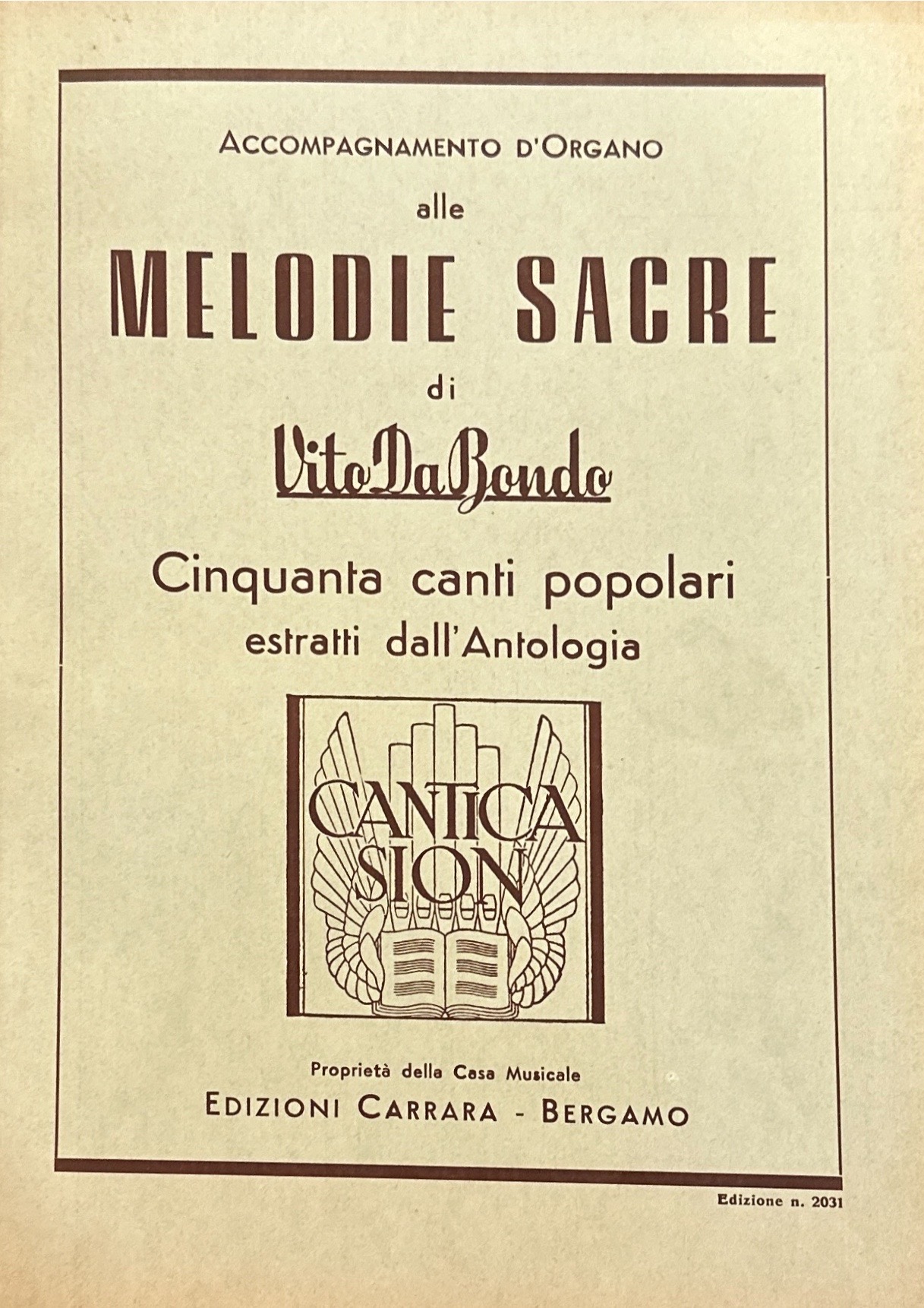 Titolo: Accompagnamento d’organo alle Melodie Sacre di Vito Da Bondo | Cinquanta canti popolari estratti dall’Antologia “Cantica Sion”.