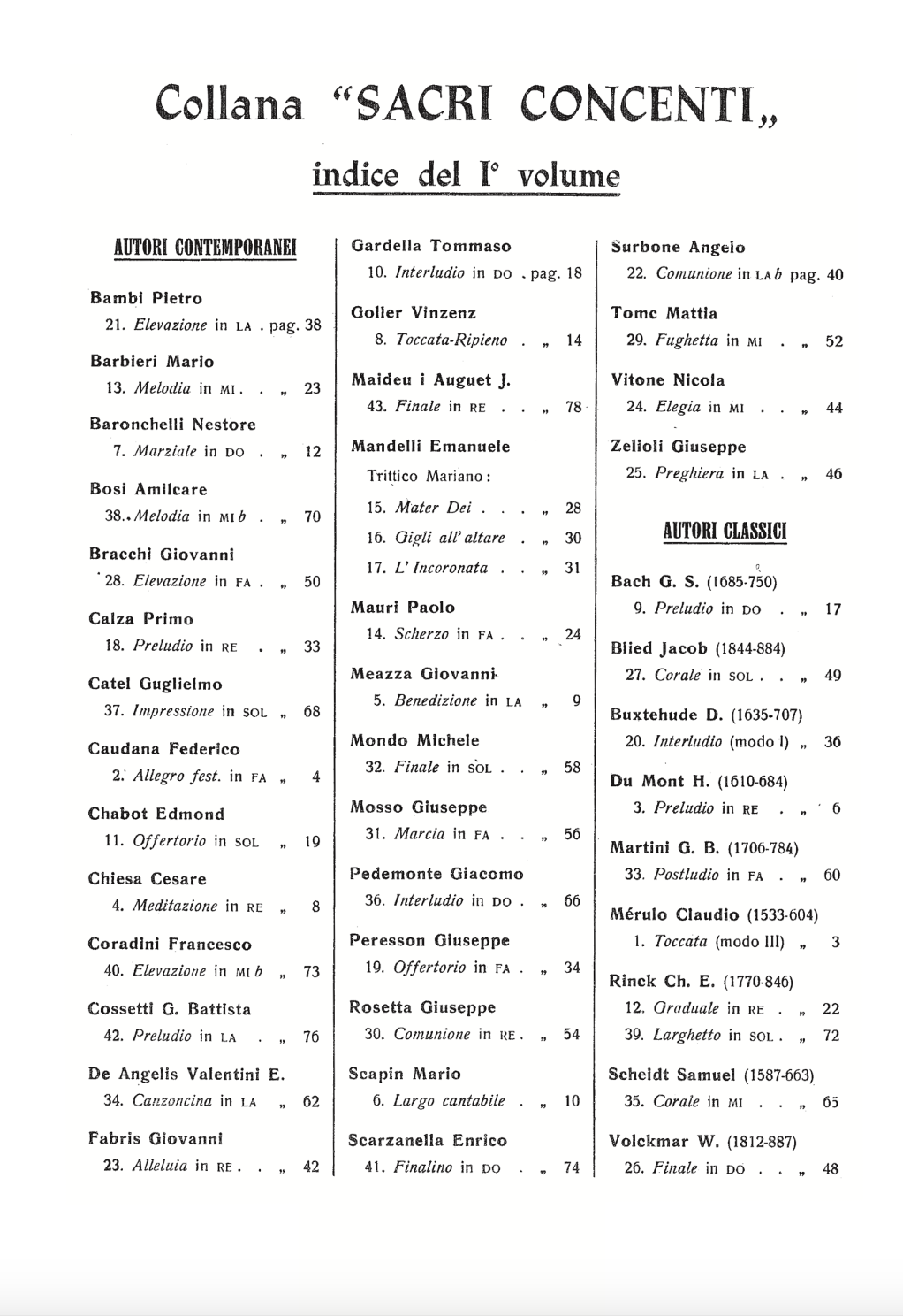 Questa storica collana in 27 volumi, che può e deve essere considerata il vademecum di tutti gli organisti, l’indispensabile per gli allievi e i dilettanti, la didattica economica per i seminari e i monasteri, il testo ausiliario per le scuole ceciliane, è da sempre accolta con entusiasmo ove vi sia un’anima sensibile che ama educarsi nella musica sacra, per dedicare la “parte migliore” del suo tempo al servizio divino.